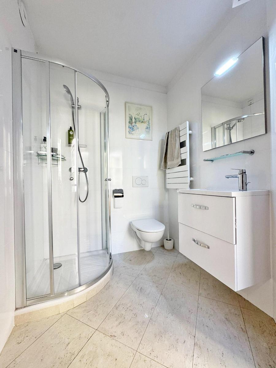 Cet appartement traversant positionné au 2e étage avec ascenseurs se compose d'une entrée avec rangements, un grand séjour de 35m² avec terrasse, une cuisine séparée avec acces a une seconde terrasse, deux chambres en suite, chacune complétée par sa salle de douche privative avec WC. Première chambre avec rangements, salle d'eau et accès terrasse, une seconde chambre avec salle d'eau et balcon.