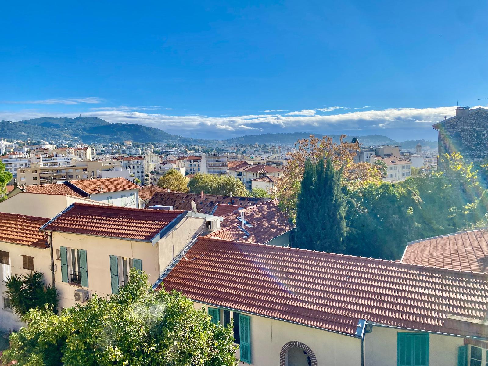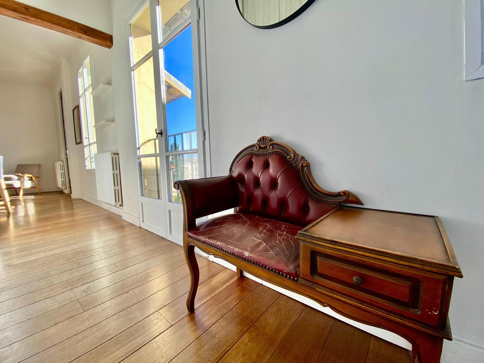 En dernier étage d'une maison sur le secteur MANTEGA RIGHI, un appartement climatisé en très bon état de type 3 pièces de 52,62m² loi Carrez (57m² habitables), composé d'une entrée, d'une cuisine équipée ouverte sur le séjour de 24m² avec un accès à un balcon avec une très belle vue dégagée sur la ville, de deux chambres dont une avec une salle d'eau avec WC.