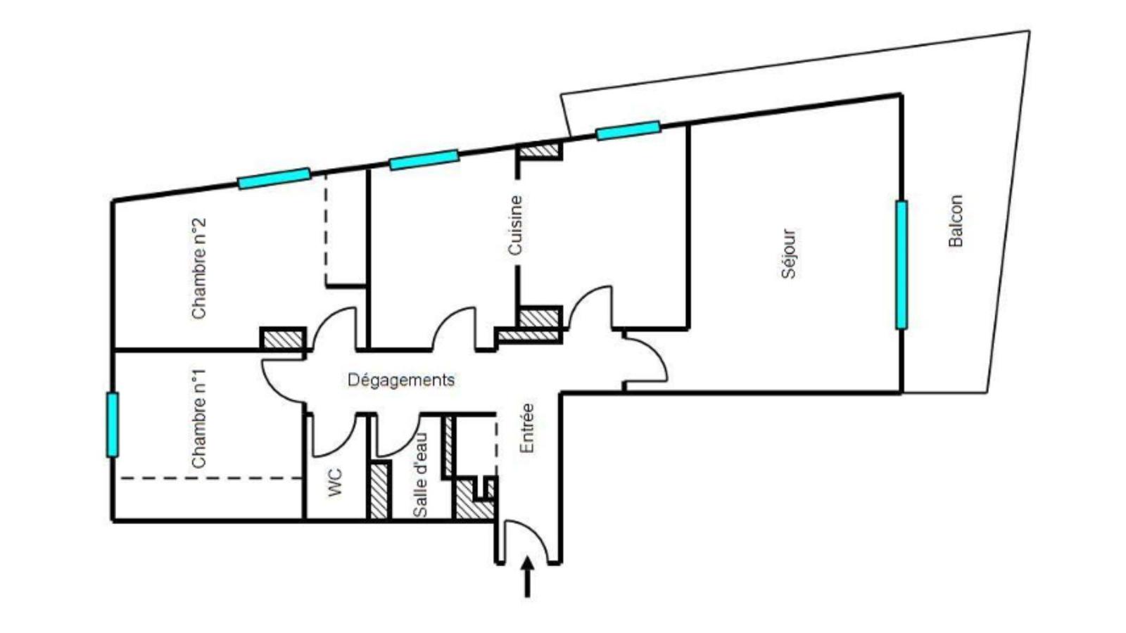 L'appartement se compose d'une entrée, d'un séjour, d'une grande cuisine indépendante équipée, de deux chambres, d'une salle d'eau, un WC séparé, ainsi que de nombreux rangements. Il bénéficie d'une double exposition SUD-EST / SUD-OUEST, apportant une belle luminosité tout au long de la journée.