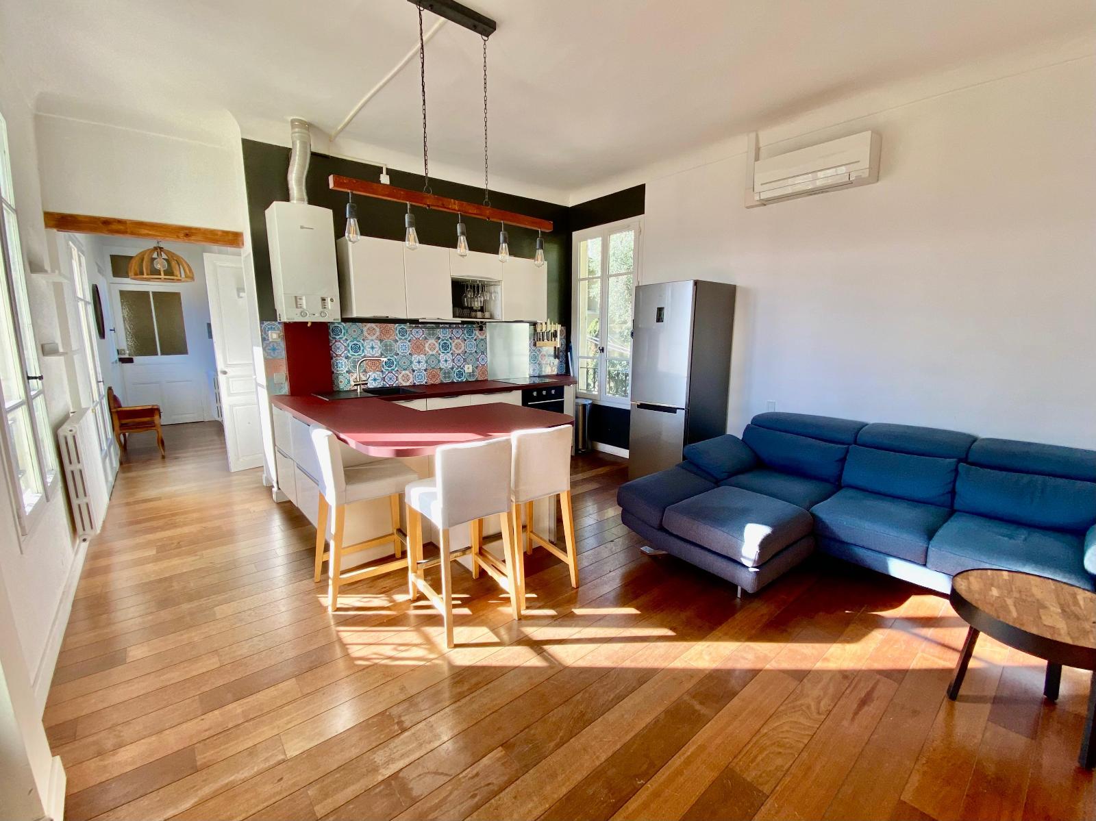 En dernier étage d'une maison sur le secteur MANTEGA RIGHI, un appartement climatisé en très bon état de type 3 pièces de 50m², composé d'une entrée, d'une cuisine équipée ouverte sur le séjour avec un accès à un balcon avec une très belle vue dégagée sur la ville, de deux chambres dont une avec une salle d'eau avec WC.