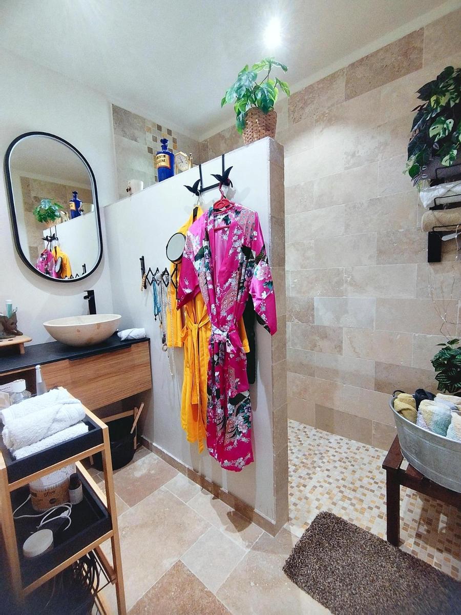 Important, 2 des 3 chambres présentent l'avantage d'être de plain-pied avec accès à une grande salle d'eau avec fenêtre, WC indépendant et bel espace pour la buanderie. A noter, l'une des deux chambres est prolongée par une véranda de 19m² qui pourra accueillir une belle salle de jeux pour les enfants, ou comme actuellement, un espace détente (jacuzzi gonflable).
